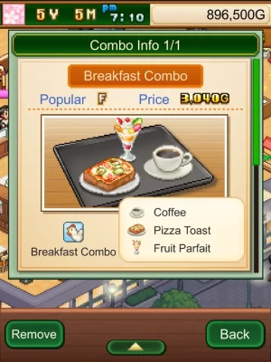 Feel like a little something on the side? Combine food items with drinks to create Combo Meals. These can also be entered into contests—pick the right meal for the right theme, and you're sure to win it big and make your cafe even more popular!