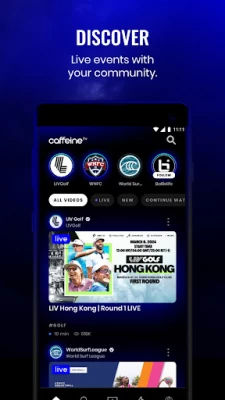 Live sports leagues and their fans are at home in the Caffeine app. New sports, leagues, and creators are being added every day. Explore the best live sports events and watch daily live streams. Engage and chat with other fans.
