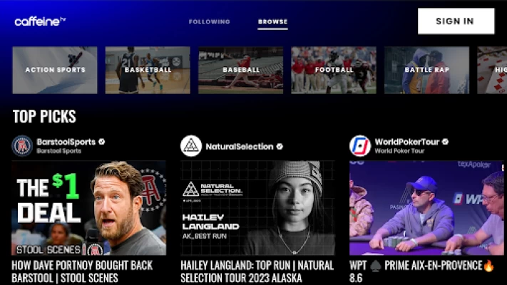 Caffeine is the home for live sports + community, from Action Sports to Basketball, Battle Rap, Football, Combat, Golf, Soccer, Hockey, Racing, and more. Discover exciting live sports and events from the best leagues and teams in the world and watch live and on-demand all for free on desktop and mobile devices or cast to your TV. Watch live events from creators like X Games, MLB, and A7FL. Or catch the latest sports news from TMZSports or Barstool. Download Caffeine and join over 60+ million monthly active users discovering, watching, and interacting with sports and fans. The best way to watch live sports is on your TV, desktop, or on the go.