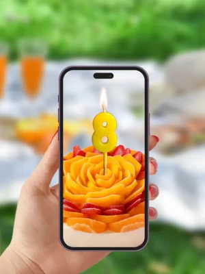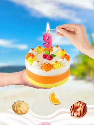 DIY your cake with many toppings. Wish and blow the candles out to have a happy birthday party.