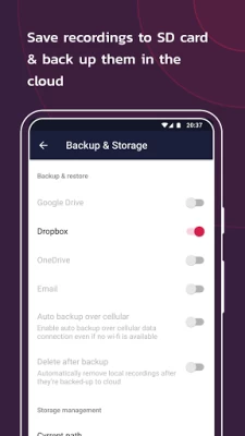 * Recordings back up in the cloud, e.g. on Google Drive, or else