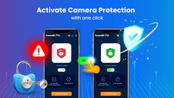 With just one click, your phone camera will be fully protected and blocked from surveillance apps.