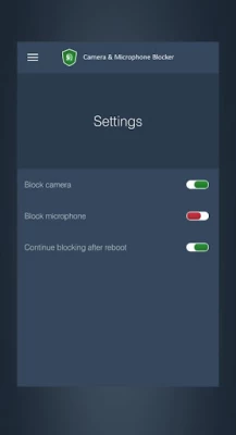 Camera & Microphone Blocker is a free application that blocks both internal and external attempts to open your device’s camera and/or microphone. ShieldApps’ Camera and Microphone Blocker provides a user-friendly solution, designed to easily block and protect your phone from unwanted privacy intrusion and abuse. The simple interface is easy to use and allows the user to choose settings. Android devices’ users can block either-or camera and microphone. The home screen button will display the current status, either Blocked or Unblocked.