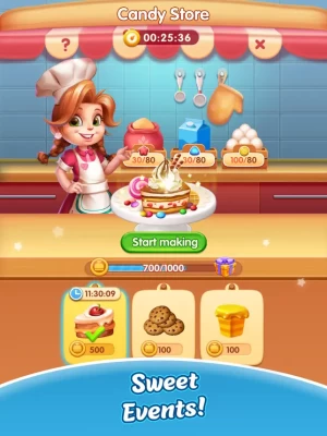 Daily Reward, Spin the wheel, Happy Hour, Sweet Mission, Sweet Treats and so on