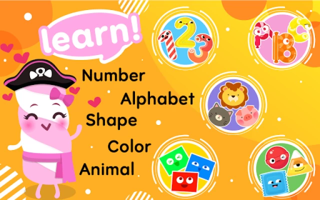 Children can learn reading, language, writing, math, music, drawing and painting. The world of animals, ABC alphabet phonics , numbers 123, shapes, colors, fruit tree, car truck… to explore with fun.