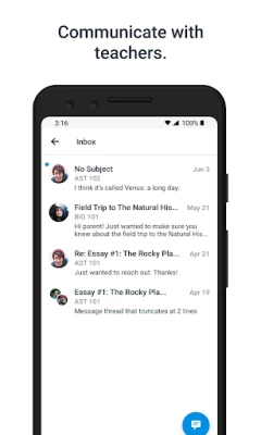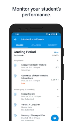 • View assignment descriptions and due dates • Set reminders for assignments • View assignment grades • View course grades • Set grade alerts • View course announcements
