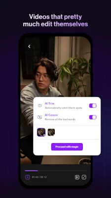 The editor is specifically designed for talking videos and makes it easy to edit the video by simply editing the words, removing filler words, and creating jump cuts with just one click. You can also add images and gifs that pop up as you talk. The captions are fully customizable with dozens of preset styles. The app also has a feature that uses AI to generate your video scripts using large language models like GPT-3 in seconds. And the dynamic island teleprompter feature makes recording videos very easy.