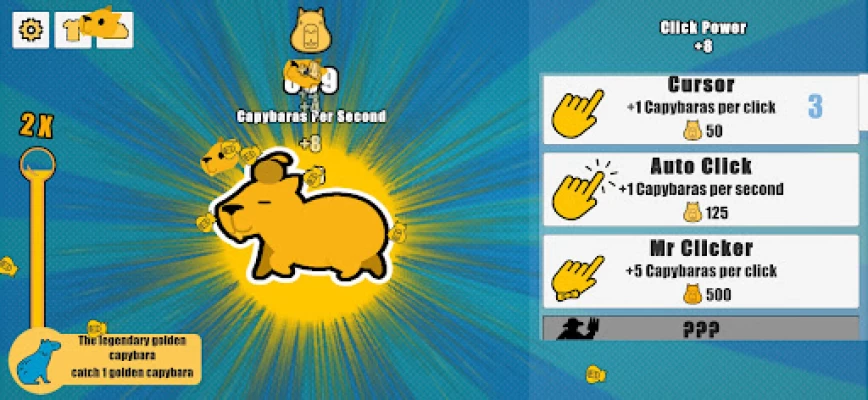 Capybara Clicker is the ultimate capybara clicker game. Make the capybaras multiply by tapping and buy upgrades to increase the rate of capybara production. Change the weather and unlock fresh skins to create one cool-looking capybara.