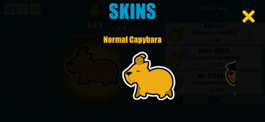 Unlock custom skins What’s better than a capybara? A cool capybara with some swag attire. You can unlock new skins for your capybara and pick your favorite one in the skins menu. You can also unlock different weather scenarios for the perfect backdrop.