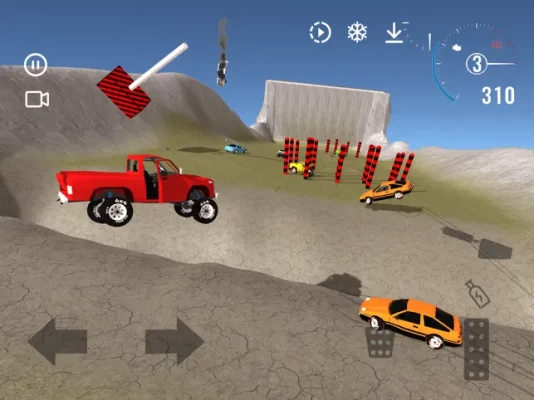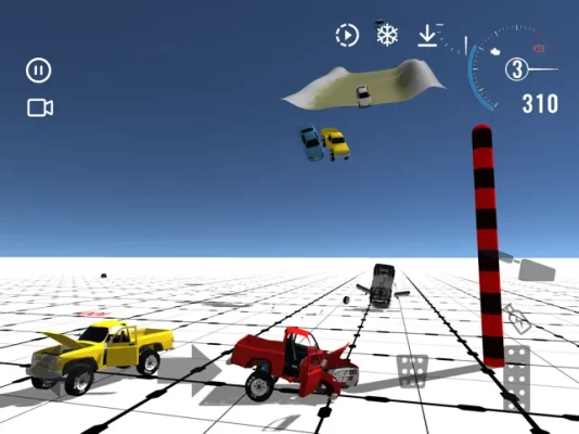 Launch destroyable vehicles from high slopes, jump on trampoline and watch the car being destroyed is slow motion. Wreck it against a wall or any other car. Massive demolitions simulation 3D.