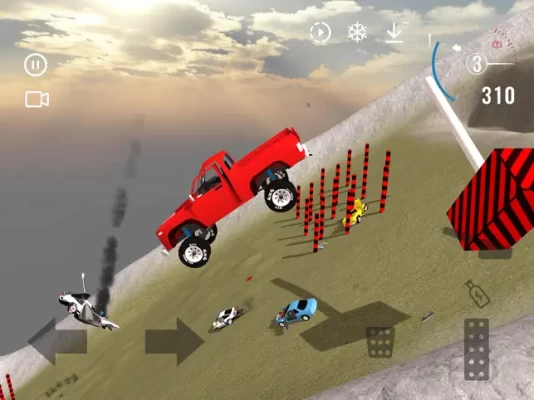 Realistic car crash simulator. Drive cars down the slopes and smash them into pieces. Destroy and tear down everything around you. Get the car off a cliff and watch it crash!