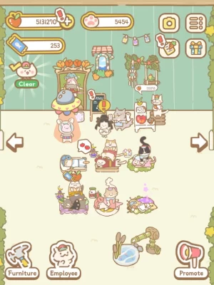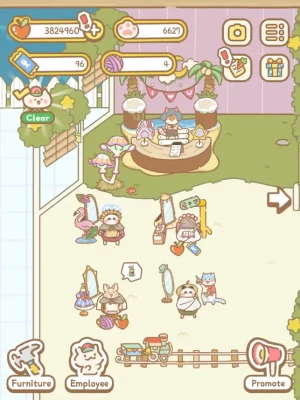 Be the boss! Hire a variety of cat fairies as your staff and watch the animal customers roll in.