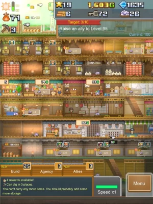 Once you make an entire floor safe, merchants will be able to move in and set up shop there. With a cut of the profits for you, of course! Keep developing the space and earning gold, and pretty soon you'll have the finest cave in all the land!