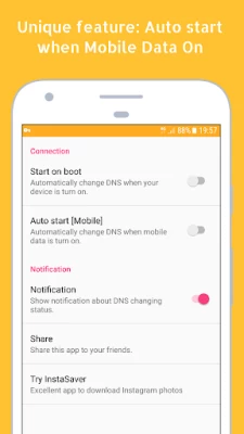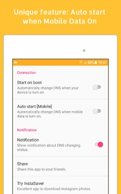 - Auto change DNS when mobile data on.