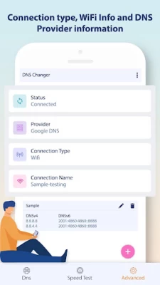 Features of Change Change DNS Server - browse faster internet allows you to change DNS server for the internet connection without root requirement.