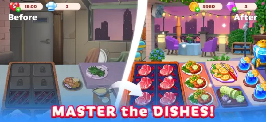 Gather a team of professional restorers and protect restaurants and cafes from Ethan's greed. Help aspiring chefs pass the assessment of the Culinary Bulletin's restaurant critic: upgrade kitchens, renovate interiors, and give owners a makeover. Chef, hurry now to discover unforgettable culinary adventures! Play Chef & Friends!