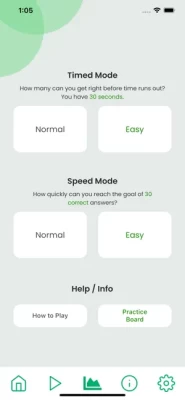 Play a training game against the clock, global users, and yourself.