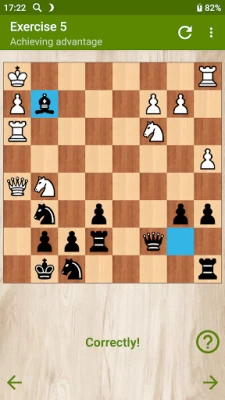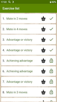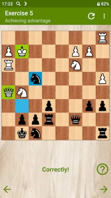 The free version contains 20 interesting puzzles with victory combinations, achieving advantage and checkmating in several moves. After solving each of them, the opportunity opens up to watch the whole chess game, from which the position of the exercise was obtained. In the full version of the application, 215 tasks are waiting for you.