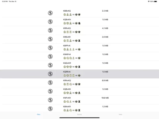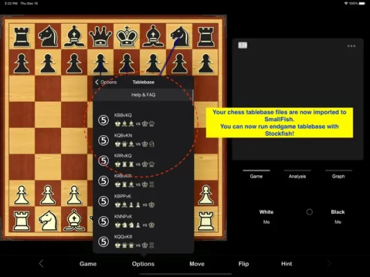 Chess Tablebase for Stockfish is a file management app for managing chess endgame tablebases. Seamlessly integrating with the SmallFish iOS chess app for Stockfish, it enables you to import your tablebase files into the SmallFish app, which operates on the latest Stockfish AI. Additionally, you can query specific endgame positions to determine if they result in a win or a draw. This app provides the answers you need.