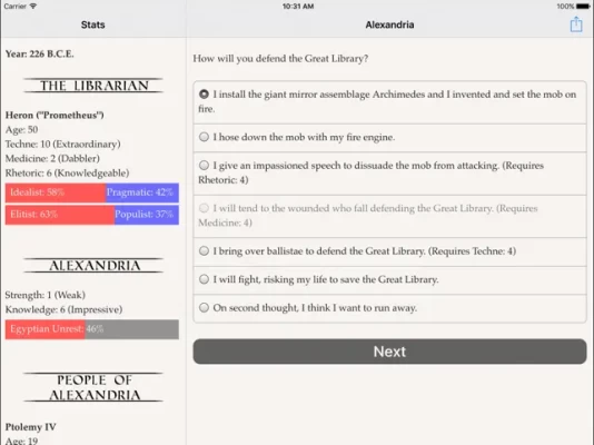 Change the course of history! Can your scientific discoveries save the ancient Library of Alexandria? Will you defend the empire's legacy, or your own?