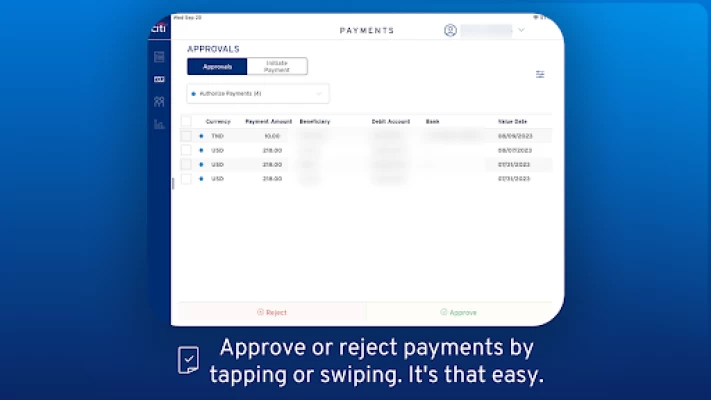 CitiDirect® offers a mobile experience for payment review, authorization, initiation, and release.