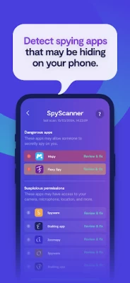 ▶ Spyware scan: let Clario Anti Spy scan your entire device to detect malicious apps and suspicious permissions.