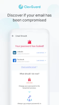 ✔️Discover if your email passwords have been leaked on the web.