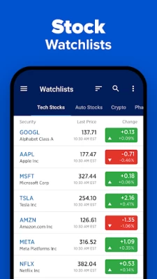 Following stocks and keeping up with the market is easier than ever with our mobile app. Stocks are easily tracked in customizable watchlists so you can get real-time stock market quotes and global market data on your phone throughout the day. View trading data pre-market and after-hours, with charts with customizable time frames, all from your mobile device.