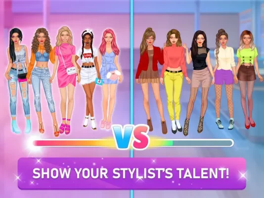 For each girl, there are over 200 items (clothing, makeup, accessories) to choose from. Design various outfits, select one of the many hairstyles and put together cute model looks from facial features in this virtual beauty salon.