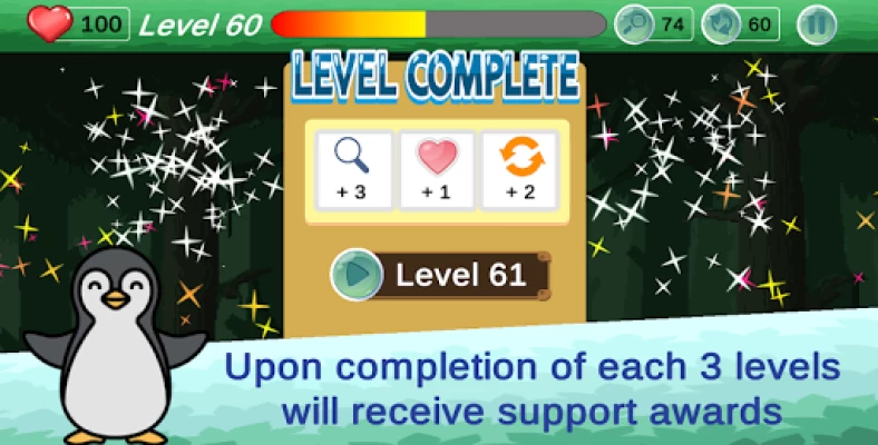 - Every time you pass 3 levels will get additional help.