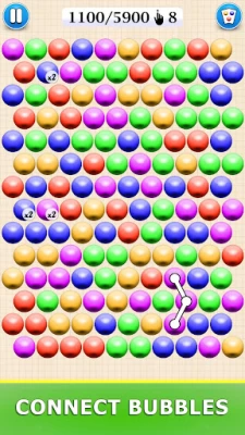 This is a game filled with challenges and fun. Connect bubbles one by one by moving your finger across the screen to make them disappear. Form groups of three or more neighboring bubbles of the same color to bust them. Aim for the longest connections to get bigger scores.
