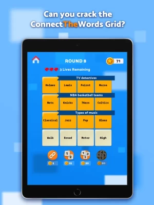 ConnectTheWords (formally Connect4Words) is a brand-new word game full of puzzling brainteasers and challenging word puzzles! The game is designed to stimulate the brain with exciting word categorization puzzles and provide a fun and engaging daily activity. The only word connections app of its kind!
