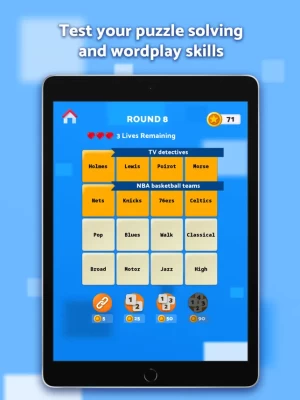 Test your word game and puzzle-solving skills and see if you can re-order our 16-square word grid into four groups of four connecting words or terms. Simply select four squares whose words are connected; do that correctly four times and you move to the next Round; every eight Rounds, you move to a new Level; each Level gives you a new Rank! Word games get more challenging as you complete more levels until you become a word games expert!