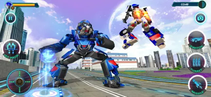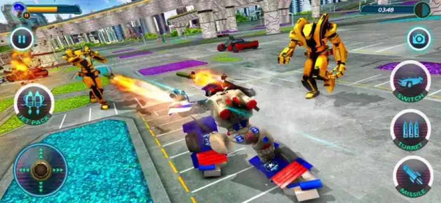 Cops Robot Battle is Robot fighting game in the new city and the whole organization of evil robotic powers is fighting to destroy the city. Let's fight back with flying war machines in the robot battle city to demolish all rebellious red robots.