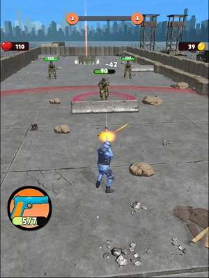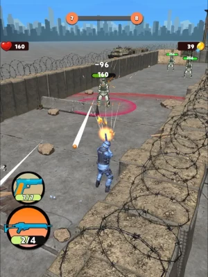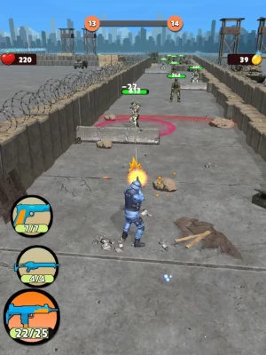 Defeat enemies during missions! Upgrade weapons and get new guns! Joystick & release easy-to-learn controls with addictive gameplay mechanic!