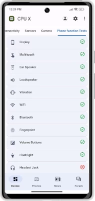 • Tests - test your device's functionalities like Display, Multitouch, Ear