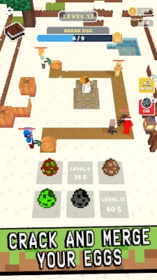 Idle Craft and merge eggs to create an army of mighty monsters that will aid you in defending your base from impending threats in Building Games. The future of this cube world rests upon your ability to strategically merge eggs and create stronger beings in Idle Craft Merge Adventure. ?