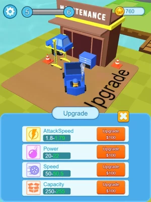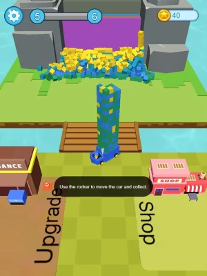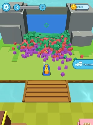Playing Methods: Go to the construction site, find a suitable location, and then place the fort. Slide your finger and aim at the position you need to bomb. When the wall is bombed, you can change the mode of the car to transport these material resources. Upgrading your transport can improve your game experience.