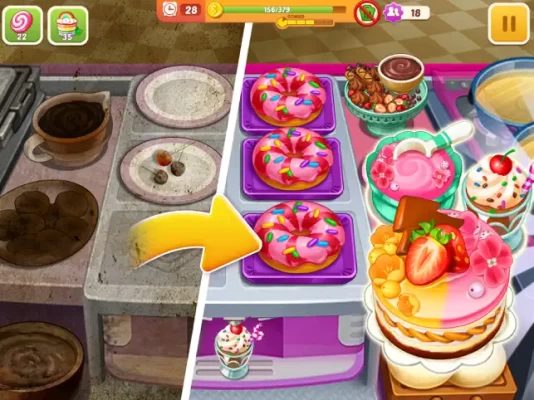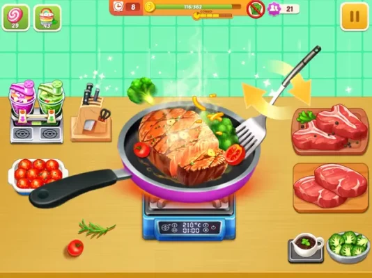 We give you the best cooking gameplay, the best cooking experience, and the best cooking fun. Our dedicated artists give you the best kitchens, kitchenware, ingredients, and beautiful food that will tantalize your taste buds. You can: