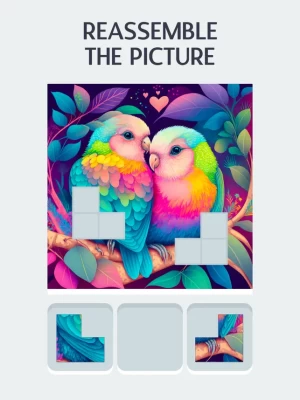 Relax your mind while putting tiles together. Move pieces into the blank fields until the complete picture is revealed. Use hints to match next piece or see the image.