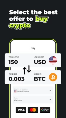 – Buy crypto and Bitcoin with credit card, debit card