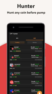 ‣ Hunter: set notifications; see hunting and results for BTC & USDT