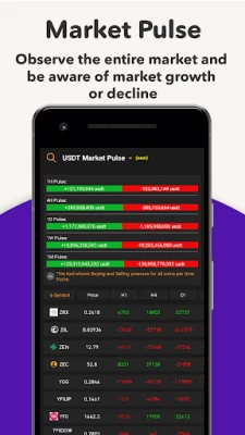‣ Market Pulse: check market growth or decline for different coins