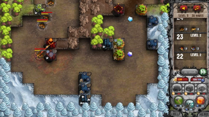 - Protect your Gems from waves of pilfering heroes - Awesome towers with 12 different upgrades and unique powers - 33 epic skills to unlock and add to your firepower - Devastating spells like Meteor and Frenzy to unleash on the invaders - 15 challenging levels - Many hours of play and replay to achieve the coveted "Brilliant" rating on all levels