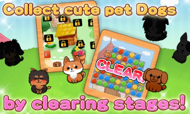 Explore the world of Puzzles with cute pet Dogs! Easy, swift, fun to play Puzzle game.♪