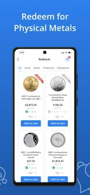 Buy and sell digital precious metals (gold, silver, platinum and palladium), securely stored and insured.