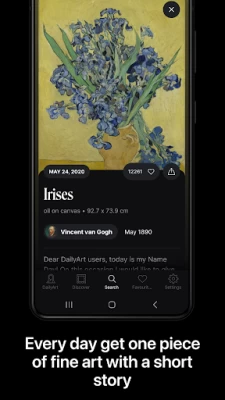 DailyArt is the #1 app to learn about art history. Every day, get inspired by beautiful classic, modern, and contemporary art masterpieces and read short stories about them. Join the community of art lovers for whom DailyArt is something that enlightens their day, every day. For free!