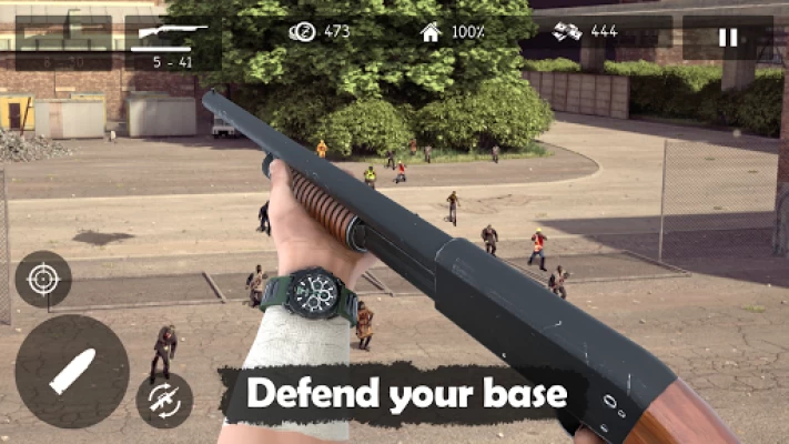 At each location you must protect your base from being infiltrated by zombies.
