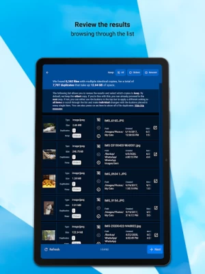 3) You review a list of all the duplicates that have been found, optionally choosing which ones to ignore.