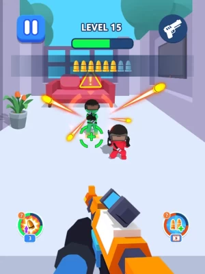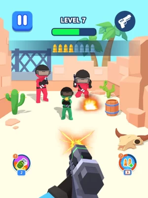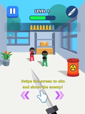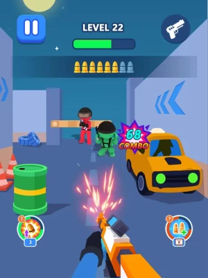 When you cut off all the bullets, it is the moment of counterattack. Use your gun to defeat the enemy, and when you defeat all the enemies, it is the moment of victory.